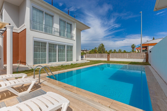 Antalya/Belek bölgesinde bulunan Villa Leviosa 2, 4 yatak odalı 8 kişilik konaklama kapasitesine sahiptir. Geniş ve ferah bir bahçesi mevcut olan bu villamız kalabalık aileler için dizayn edilmiştir. Size özel havuz ve havuz terası mevcuttur. Konum olarak tüm ihtiyaç ve aktivitelere oldukça yakındır.