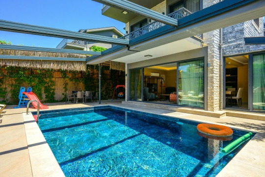 Villa İlham 4; Fethiye Merkezde yer alan villamız 4 yatak odası ve 8 kişi kapasiteli özel bir tatil deneyimi sunuyor. Çalış plajına 4 km, Fethiye merkeze ise 2 km mesafede yer alarak, hem doğanın tadını çıkarmanızı hem de şehrin olanaklarından faydalanmanızı sağlıyor. Özel havuzlu ve jakuzili olan villamız, muhafazakar aileler için de uygun bir tasarıma sahiptir. Havuzun üstü ve kenarları kapanabilme özelliği ile gizlilik ve konforu bir arada sunuyor.