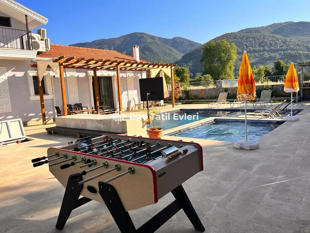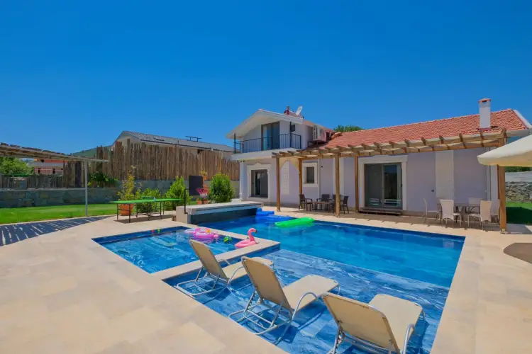 Villa Söner; Fethiye Üzümlü bölgesinde yer alan 4 yatak odalı 8 kişi konaklama kapasitesine sahip tatil villamızdır. Geniş bir havuz terası bulunan villamızın yeşil bahçe alanı, masa tenisi, langırt, barbekü, çocuk havuzu ve geniş havuz bulunmaktadır. Renkli ve konforlu dizaynı ile göz kamaştıran villamız geniş aileler ve arkadaş grupları için uygundur.