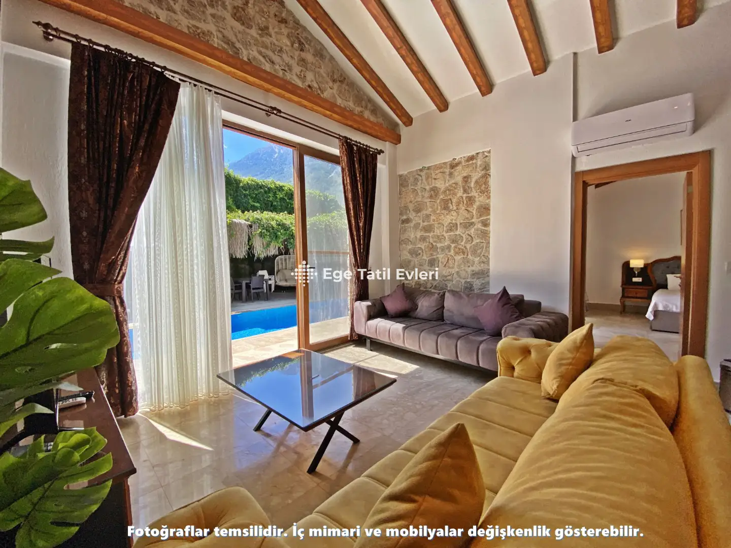 Web sayfasında belirtilen ve muhafazakar (havuzu dışarıdan görünmeyen villalar) olarak tanımlanan villalarda konaklama yapacak olan müşterilerimizin, yüzde yüz, görünmemezlik garantisini EGE TATİL EVLERİ vermez.
