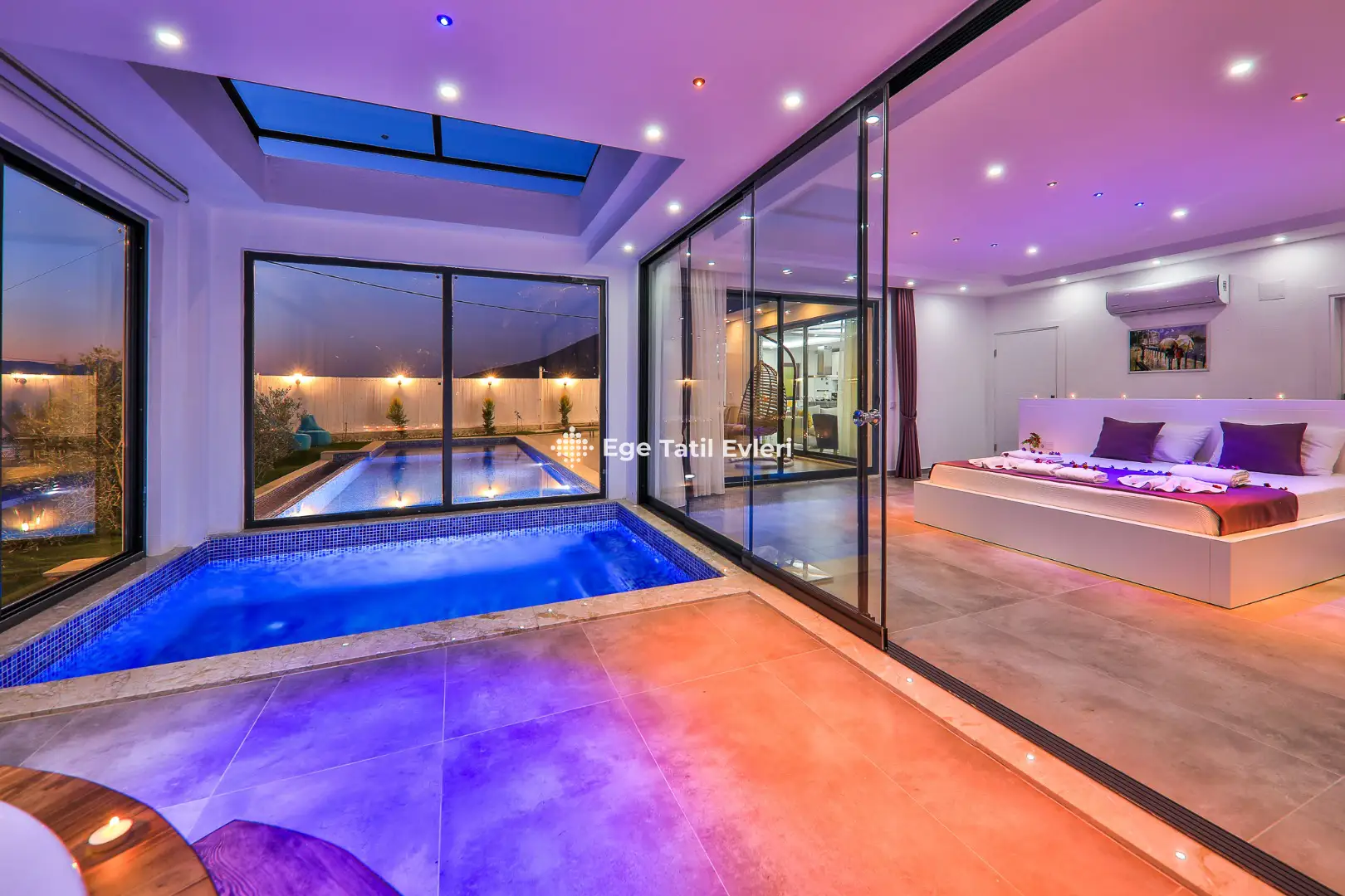 Web sayfasında belirtilen ve muhafazakar (havuzu dışarıdan görünmeyen villalar) olarak tanımlanan villalarda konaklama yapacak olan müşterilerimizin, yüzde yüz, görünmemezlik garantisini EGE TATİL EVLERİ vermez.