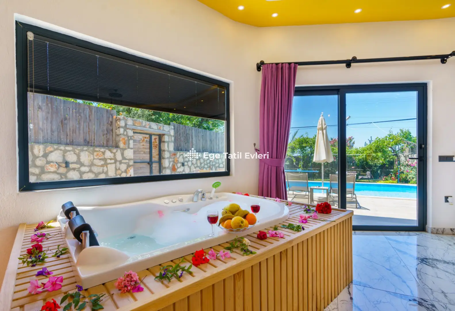Web sayfasında belirtilen ve muhafazakar (havuzu dışarıdan görünmeyen villalar) olarak tanımlanan villalarda konaklama yapacak olan müşterilerimizin, yüzde yüz, görünmemezlik garantisini EGE TATİL EVLERİ vermez.