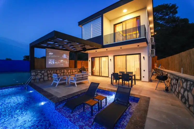 Villa Küheylan; Kalkan / Patara bölgesinde bulunan 1 yatak odalı 2 kişilik kapasiteye sahip olan villamız Patara sahili manzarasına sahip olmakla birlikte balayı villaları kategorisinde yer almaktadır. Villamızın Özel havuzu tamamen korunaklı olup Jakuzi&Sauna seçeneklerimizdendir. Özel bahçe alanında; Şezlong, salıncak, masa, sandalye ve barbekü bulunmaktadır. Ayrıca villamızın bahçe alanında bulunan projeksiyon sayesinde ortamı sinama salonuna çevirmektedir.