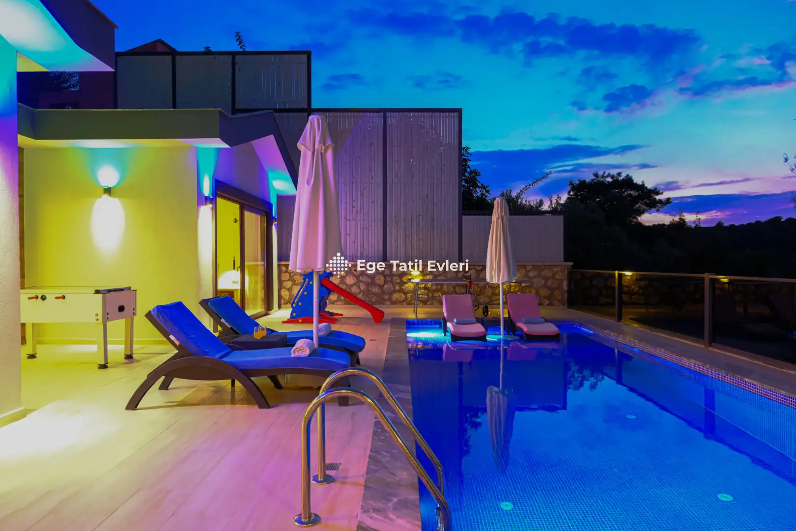 Villa Lacivert; Kalkan / Üzümlü bölgesinde bulunan 2 yatak odalı 4 kişi konaklama kapasitesine sahiptir. 1 yatak odasında da bulunan jakuzi ile konaklayan çiftler yılın yorgunluğunu atabilirler. Villamız da bulunan Sauna ve Hamam sayesinde villanızda keyifli bir tatil geçirebilirsiniz. Korunaklı havuz ve havuz terasıyla geniş ve ferah bir alan sunan villamızda ayrıca çocuk oyun alanı , masa tenisi , langırt da bulunmaktadır.