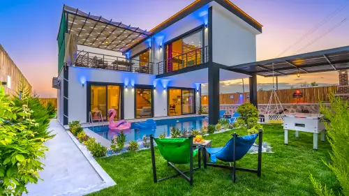 Villa Liva Park; Kalkan'ın Çayköy bölgesinde bulunan villamız 2 yatak odası, 2 banyo ve jakuzi ile sizlere keyifli tatil sunuyor. Villamızın korunaklı bahçesinde havuz, şezlong, oturma köşesi, salıncak, langırt, çocuk oyun alanı, yemek masası ve barbekü yer almaktadır. 4 kişilik aileler ve balayı çiftleri için ideal bir tatil imkanı sunmaktadır.