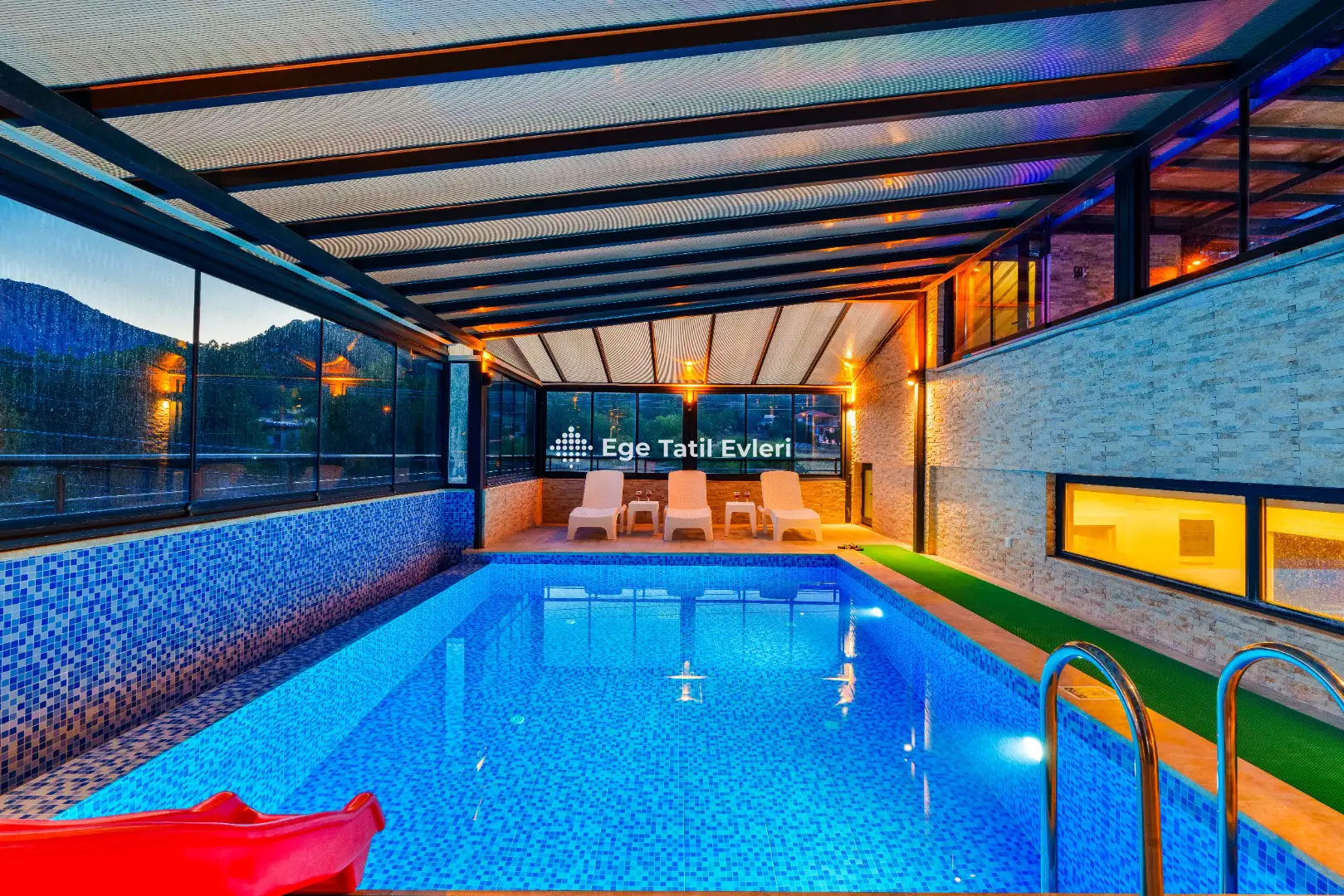 Not; Kapalı havuz ısıtma sistemi, misafirlerimizin talebi üzerine günlük 2.500 TL ek ücretle aktif hale getirilmektedir.