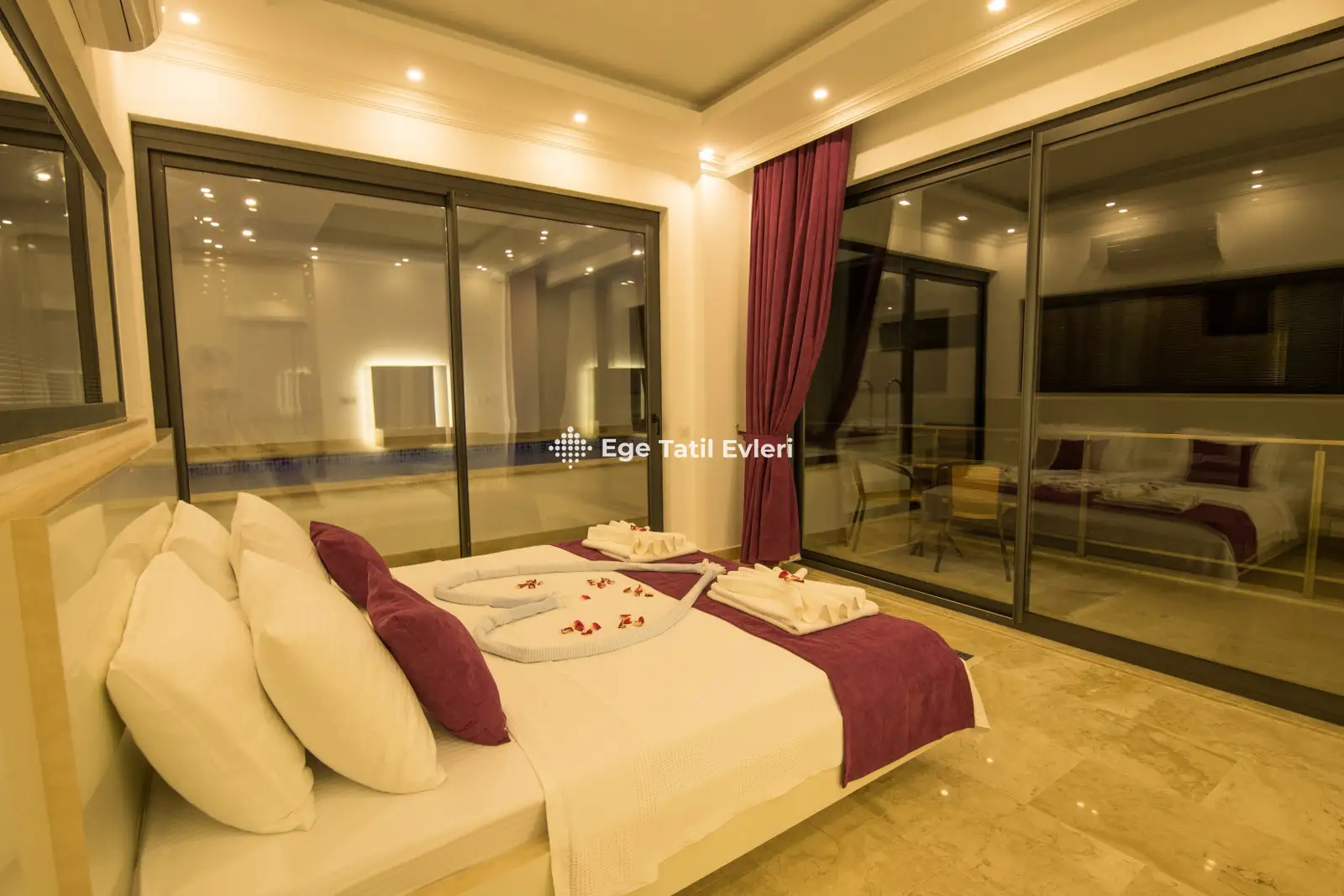 Web sayfasında belirtilen ve muhafazakar (havuzu dışarıdan görünmeyen villalar) olarak tanımlanan villalarda konaklama yapacak olan müşterilerimizin, yüzde yüz, görünmemezlik garantisini EGE TATİL EVLERİ vermez.