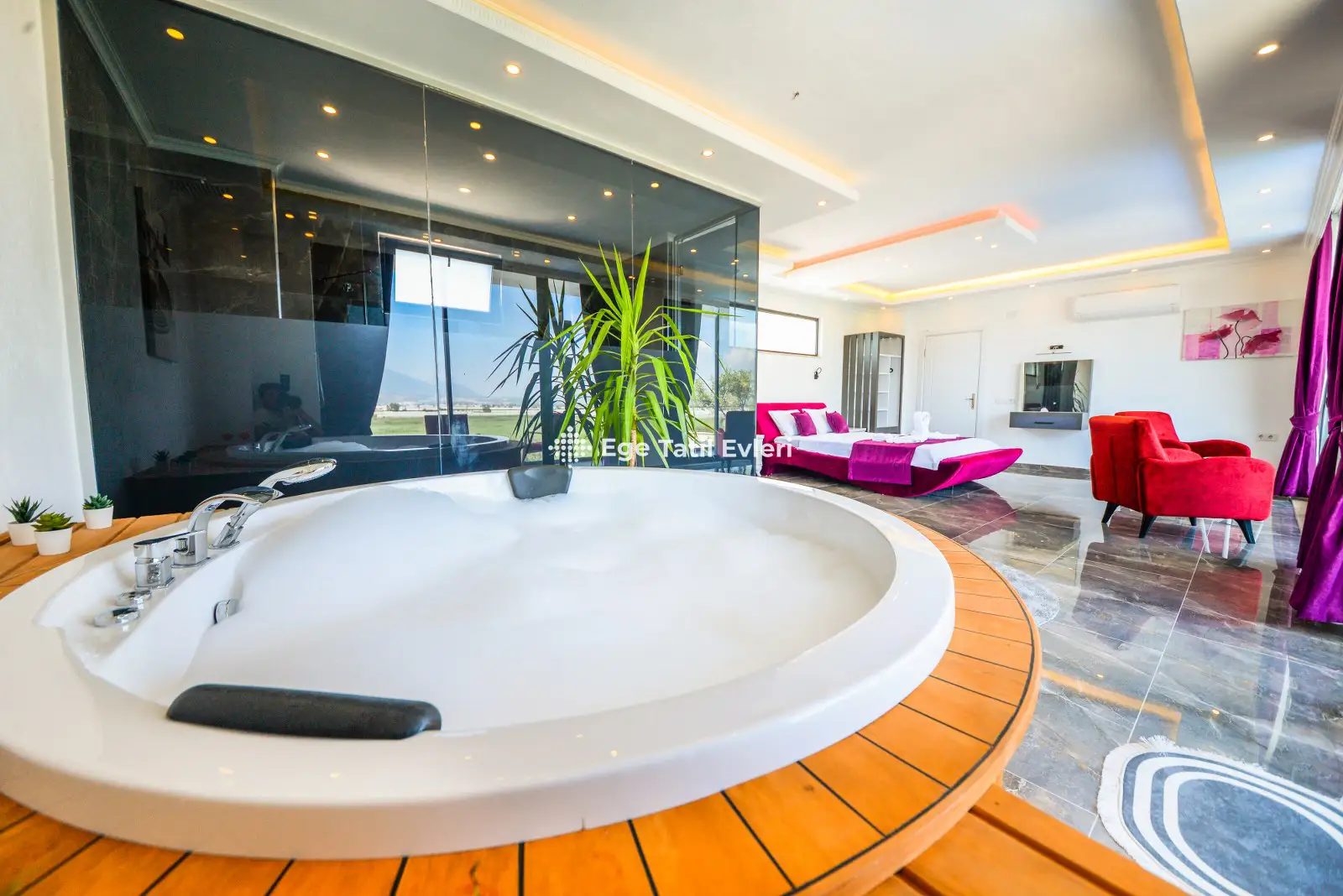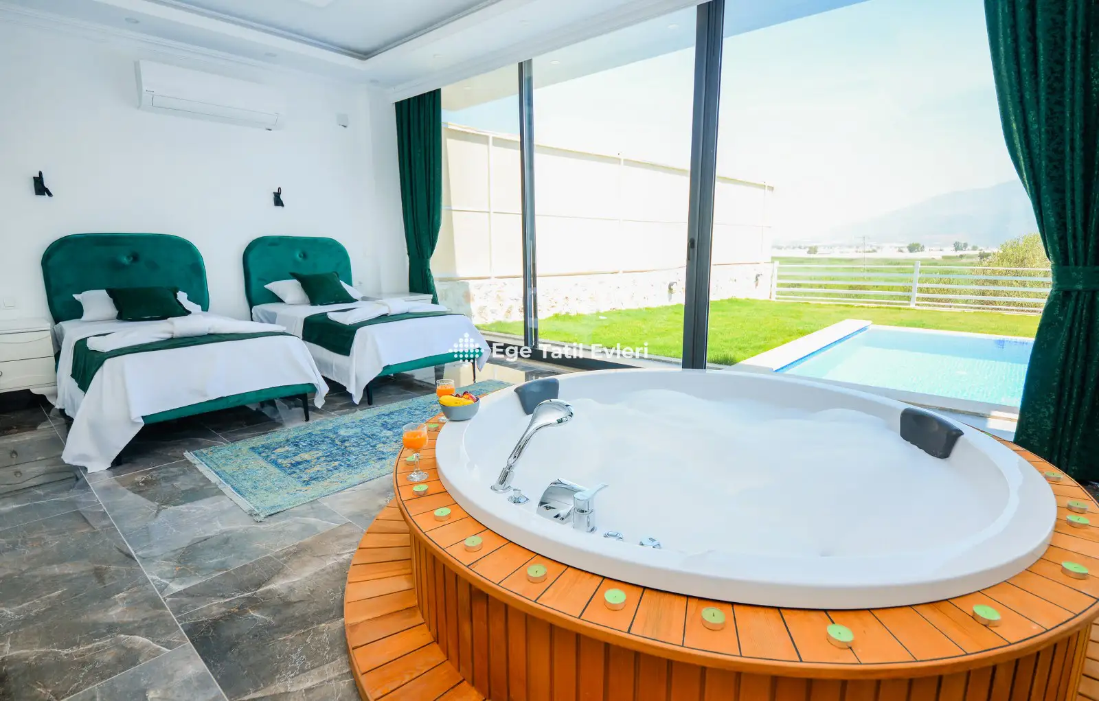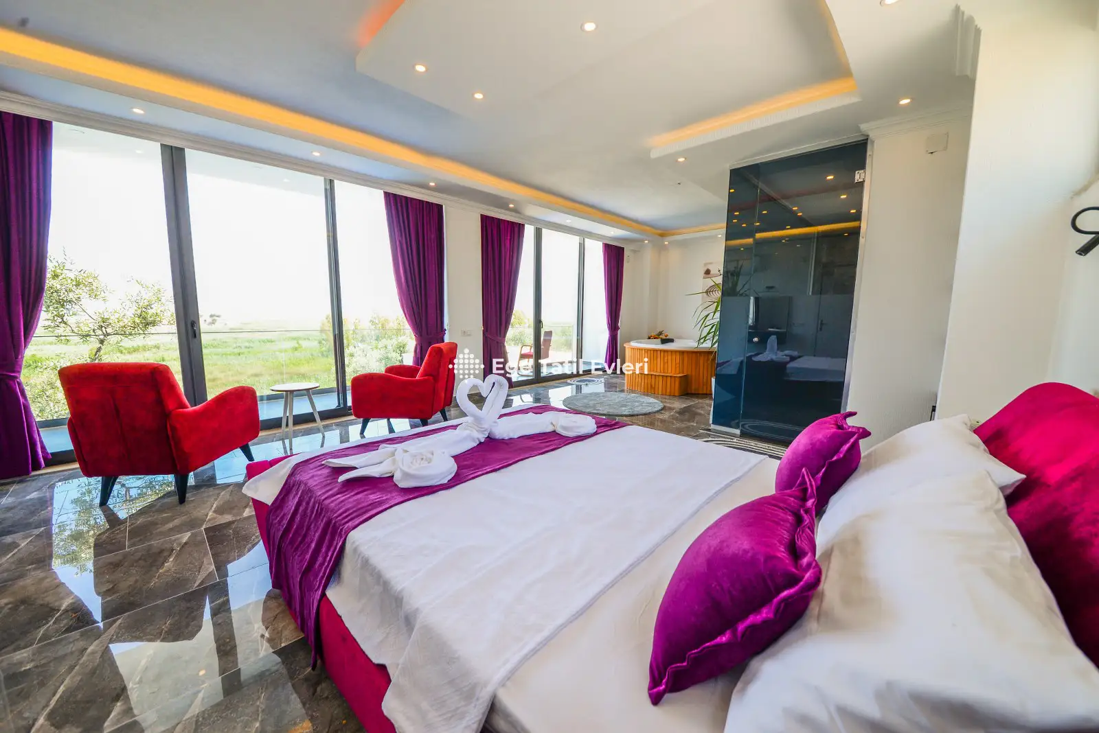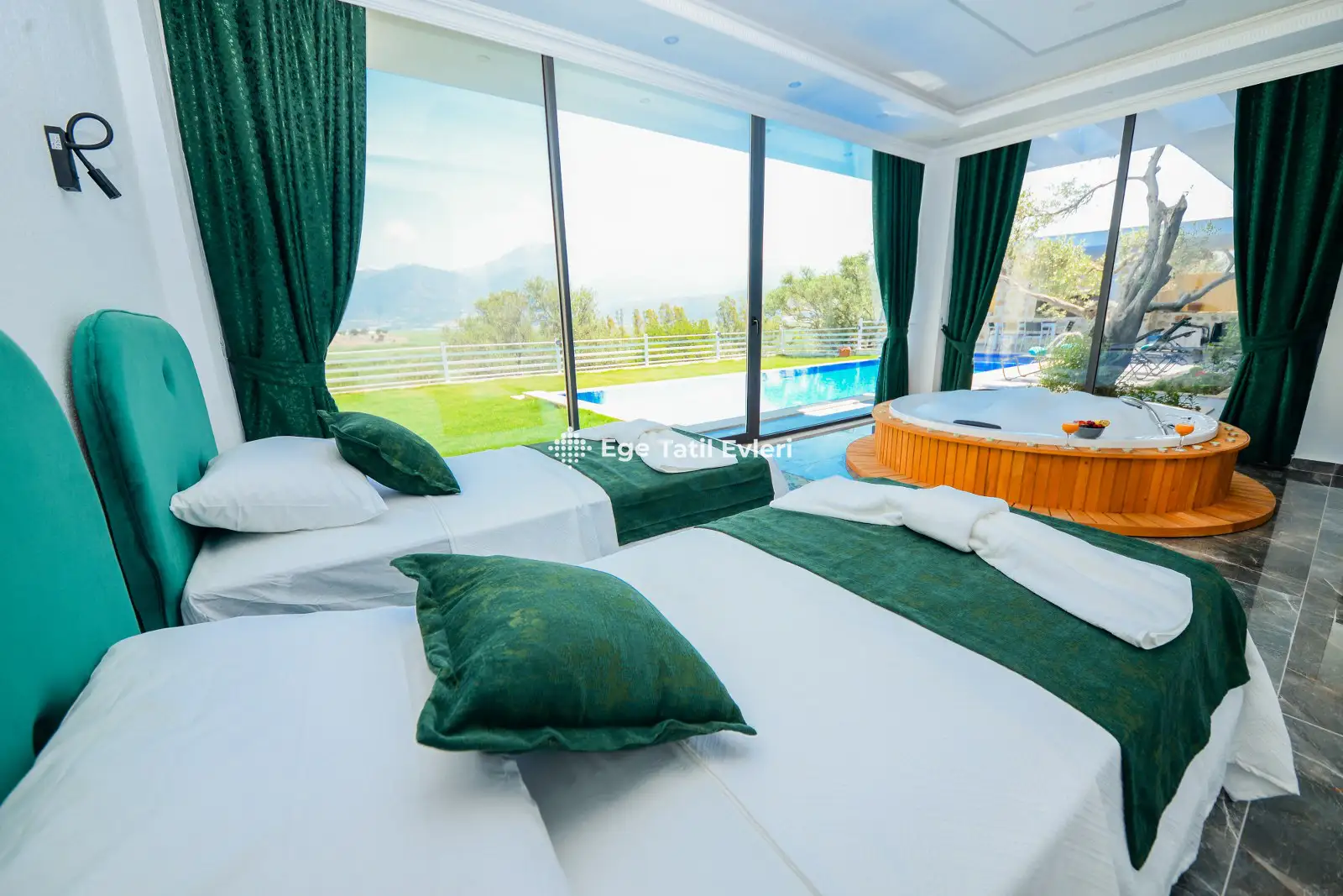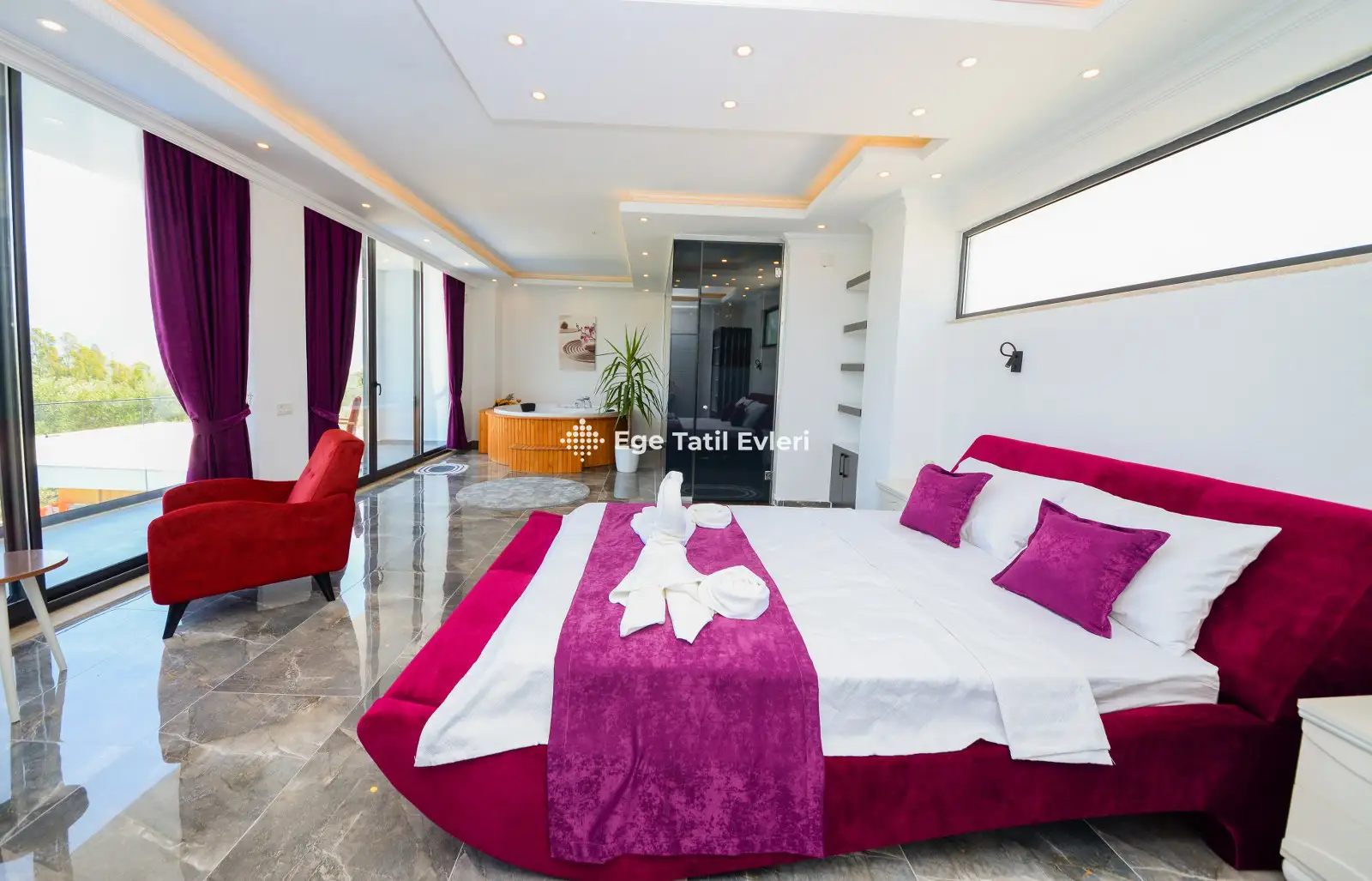 Web sayfasında belirtilen ve muhafazakar (havuzu dışarıdan görünmeyen villalar) olarak tanımlanan villalarda konaklama yapacak olan müşterilerimizin, yüzde yüz, görünmemezlik garantisini EGE TATİL EVLERİ vermez.