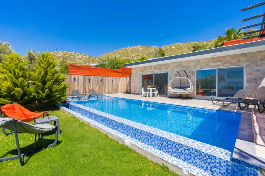 Villa Yaman , Kalkan'ın Üzümlü bölgesinde yer alan, 4 kişi konaklama kapasitesiyle çekirdek aileler ve arkadaş grupları için ideal bir tatil villasıdır. Korunaklı havuz alanı sayesinde muhafazakar ailelerin rahatça konaklayabileceği bir tatil villasıdır.Villamızın bahçesinde güzel muhabbetler ederek güzel zaman geçirebilirsiniz.ayrıca günün yorgunluğunuzu atabileceğiz suit yatak odasında jakuzi de bulunmaktadır