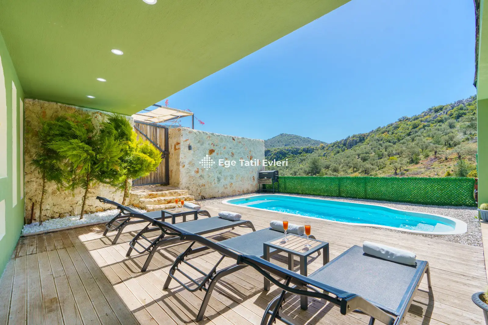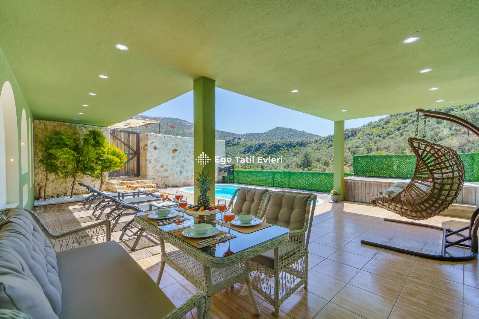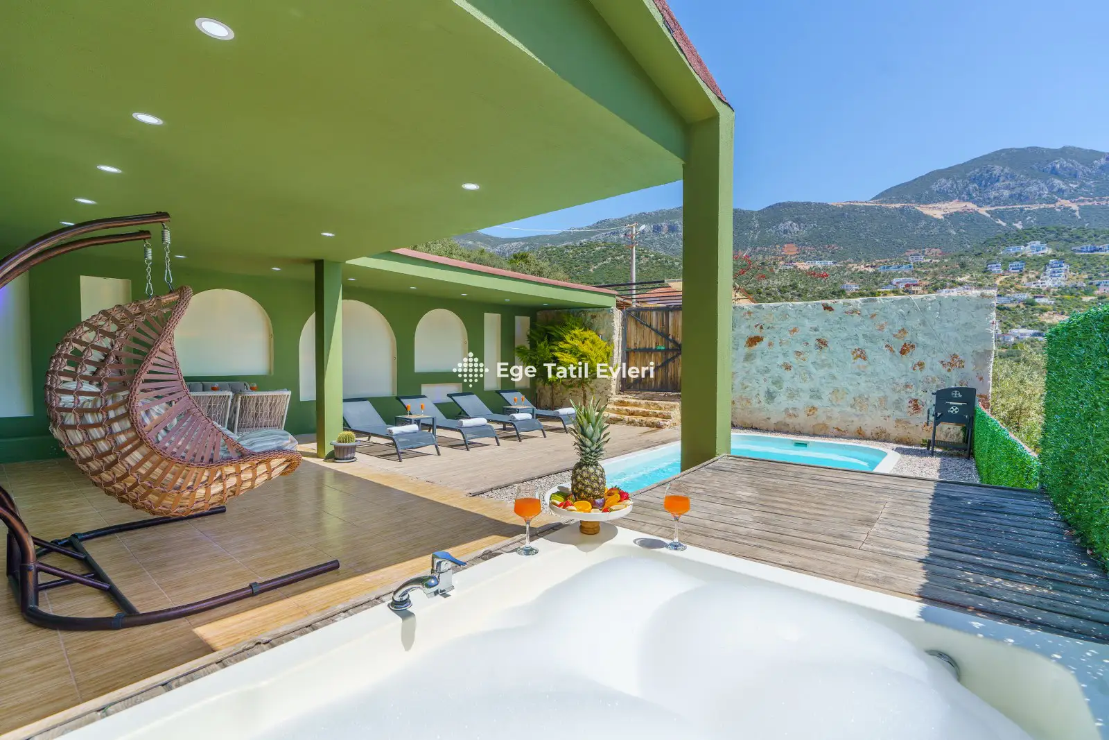 Villa Yeşil Vadi; Kalkanın Bezirgan bölgesinde bulunan, 2 yatak odası ile 4 kişilik kapasiteye sahip doğa manzaralı tatil villamızdır. Villamızın bahçe alanında dış jakuzi bulunmakla birlikte jakzui keyfini çıkartabilirsiniz. Villamız yeşil temasıyla doğadan esinlenerek tasarlanmıştır. Villamız muhafazakar villalar kategorisinde yer almaktadır. Balayı çiftleri ve çekirdek aileler için ideal plaja ve merkeze yakın tatil villamızdır.