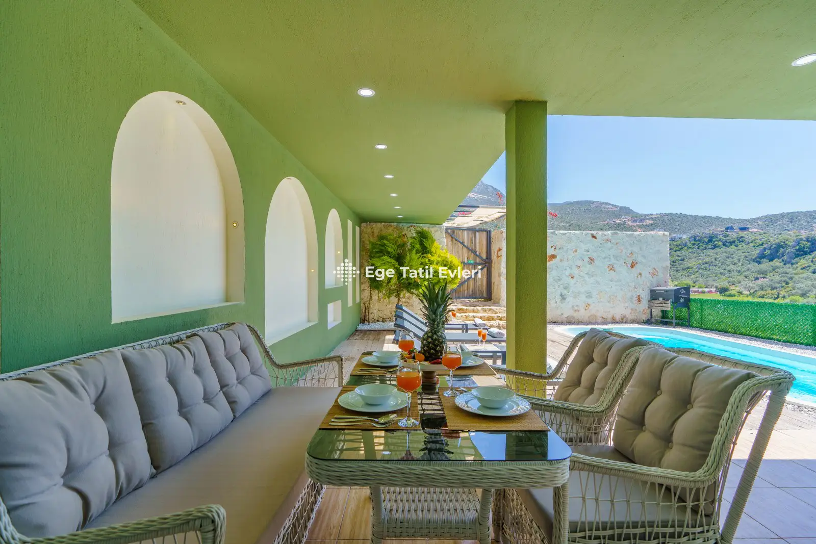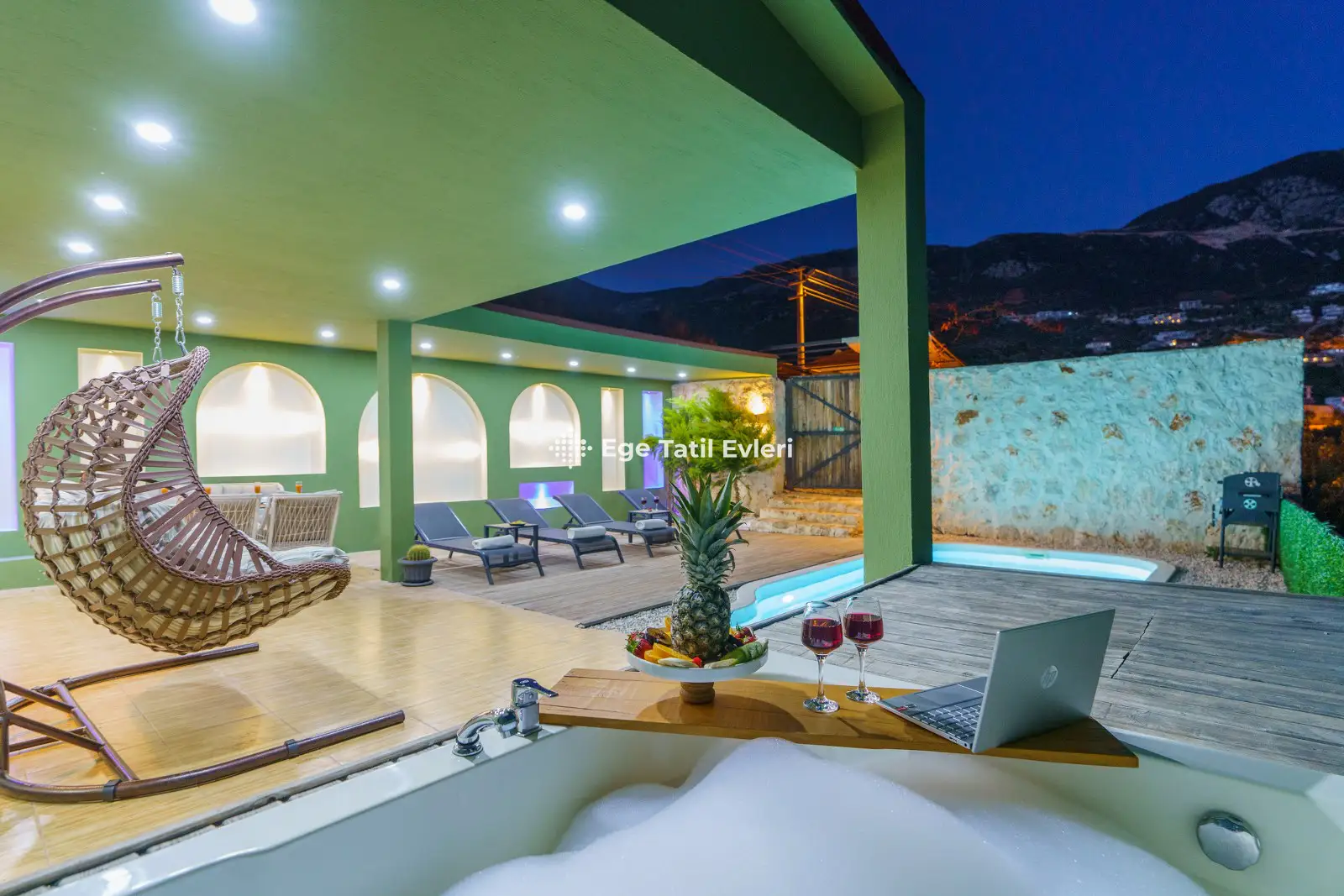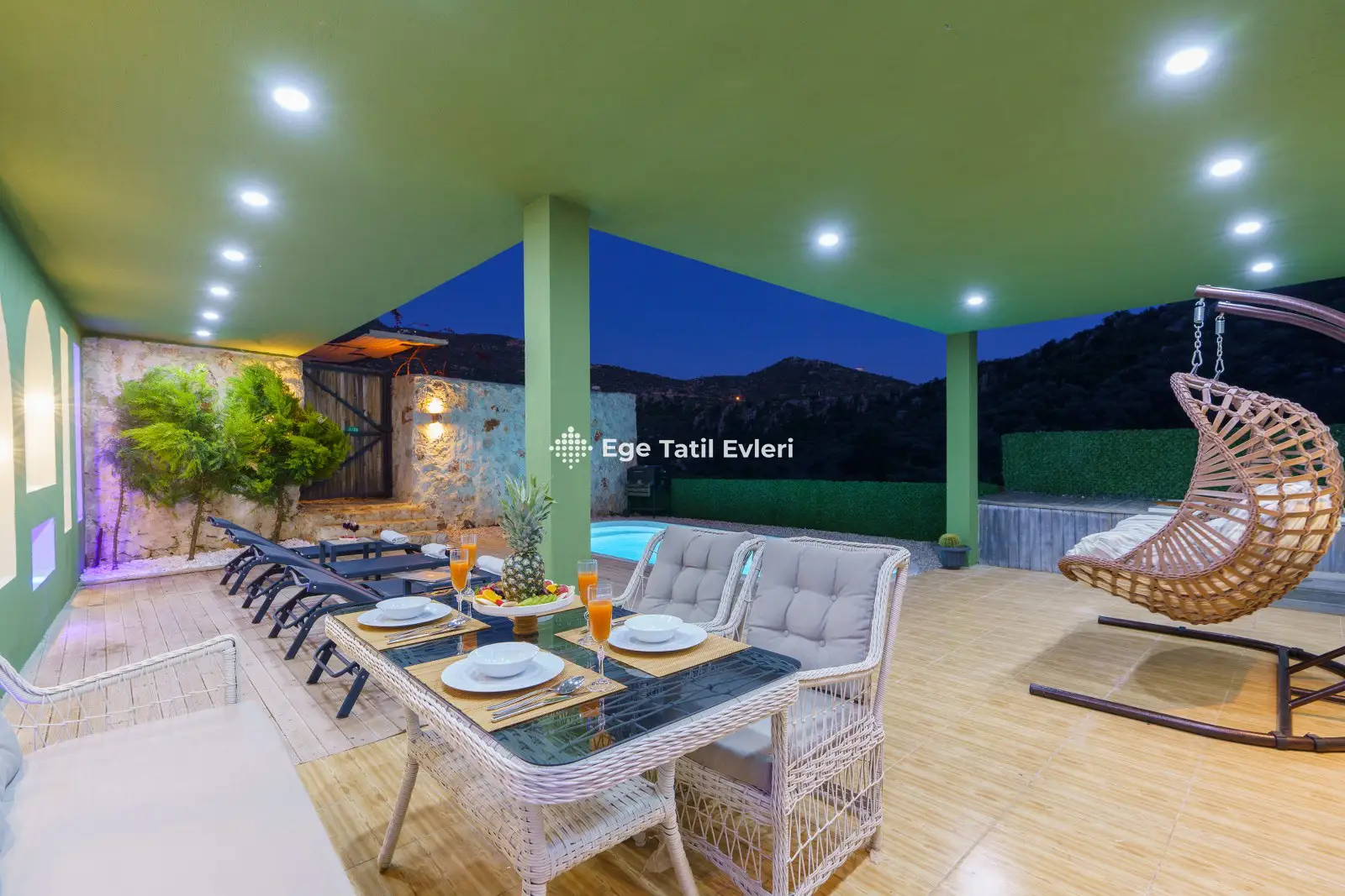 Villa Yeşil Vadi; Kalkanın Bezirgan bölgesinde bulunan, 2 yatak odası ile 4 kişilik kapasiteye sahip doğa manzaralı tatil villamızdır. Villamızın bahçe alanında dış jakuzi bulunmakla birlikte jakzui keyfini çıkartabilirsiniz. Villamız yeşil temasıyla doğadan esinlenerek tasarlanmıştır. Villamız muhafazakar villalar kategorisinde yer almaktadır. Balayı çiftleri ve çekirdek aileler için ideal plaja ve merkeze yakın tatil villamızdır.