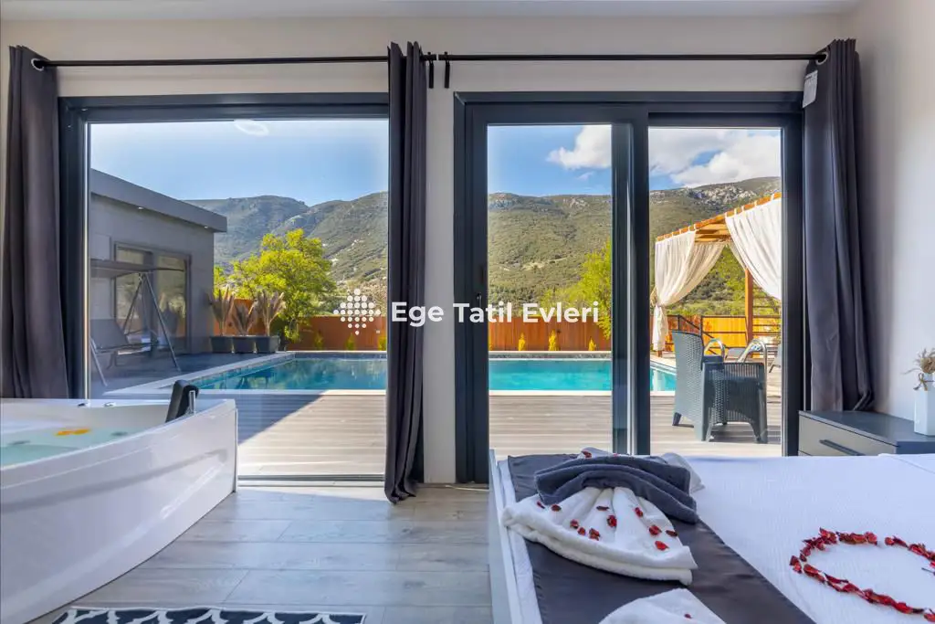 Villa Zebil 1, Kalkan'ın Hacıoğlan mahallesinde yer alan 2 yatak odalı 5 kişilik kiralık yazlık villadır. Eşsiz doğa manzarasıyla misafirlerine huzurlu bir tatil vadeden villamızda; bahçe alanında bulunan şezlong, masa, sandalye ve salıncakla keyifli anlar geçirebilirsiniz. Yatak odasında yer alan jakuzi ise tatilinize konfor ve romantizm katmaktadır.