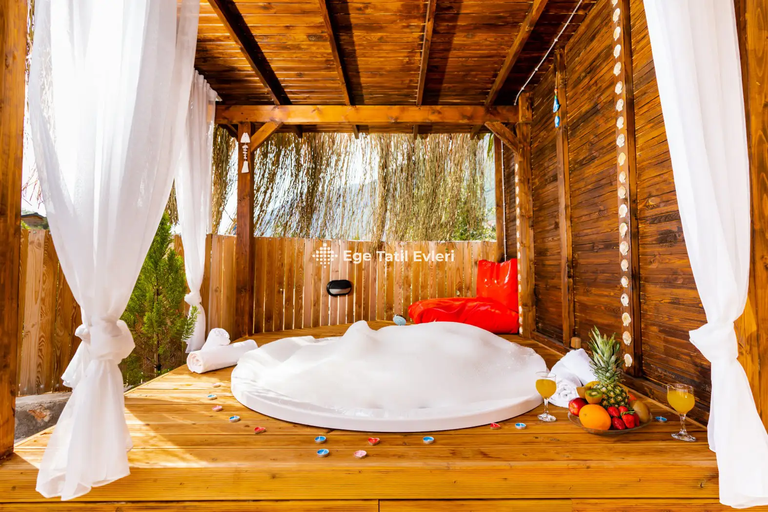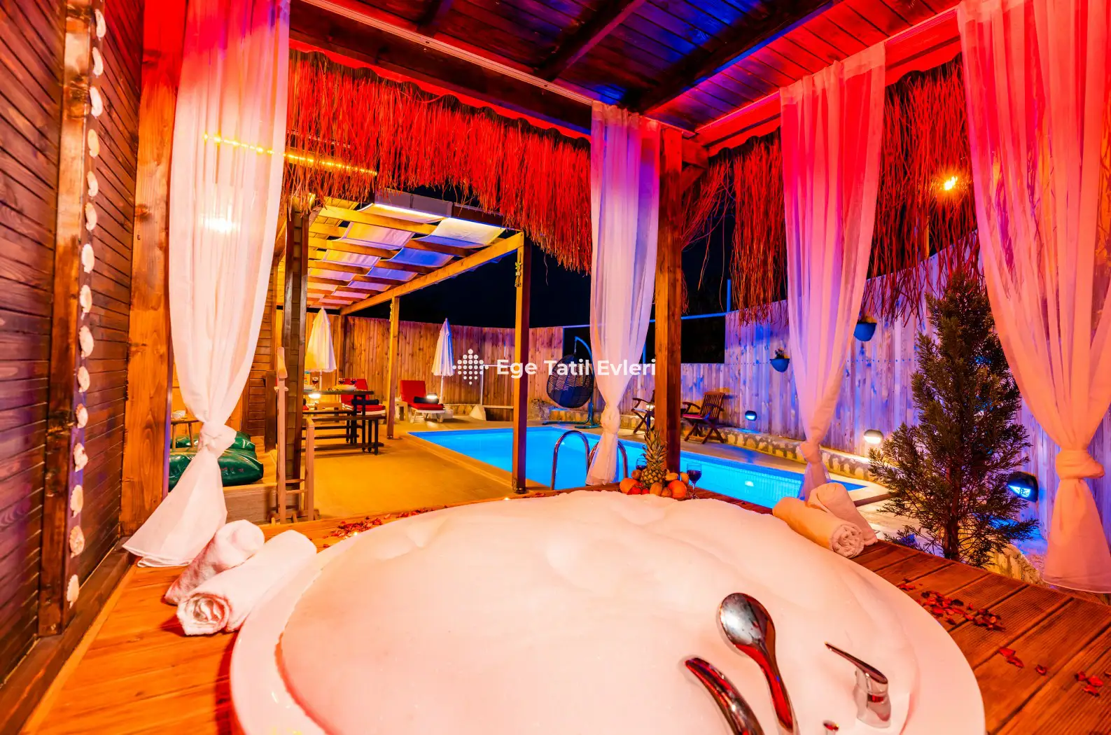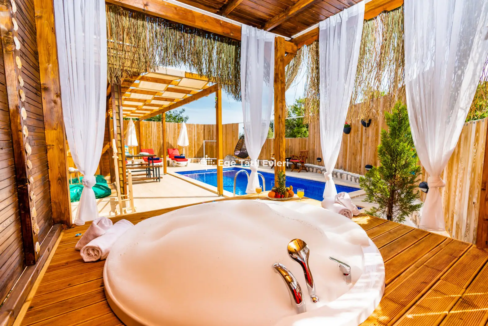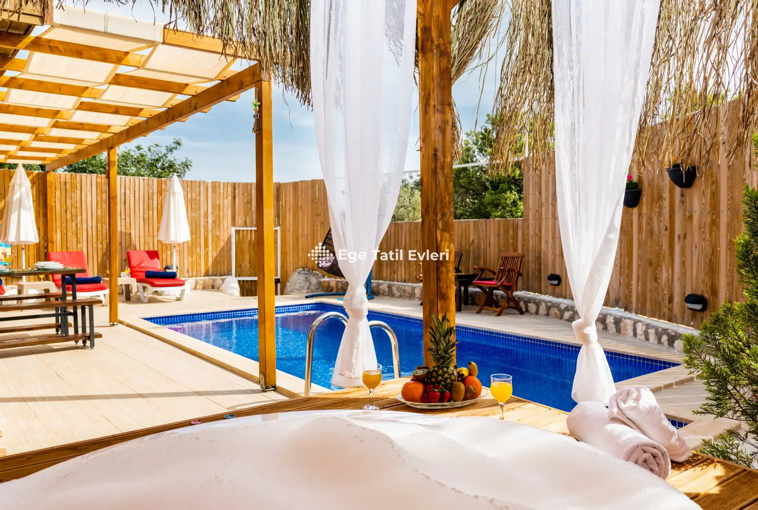 Web sayfasında belirtilen ve muhafazakar (havuzu dışarıdan görünmeyen villalar) olarak tanımlanan villalarda konaklama yapacak olan müşterilerimizin, yüzde yüz, görünmemezlik garantisini EGE TATİL EVLERİ vermez.