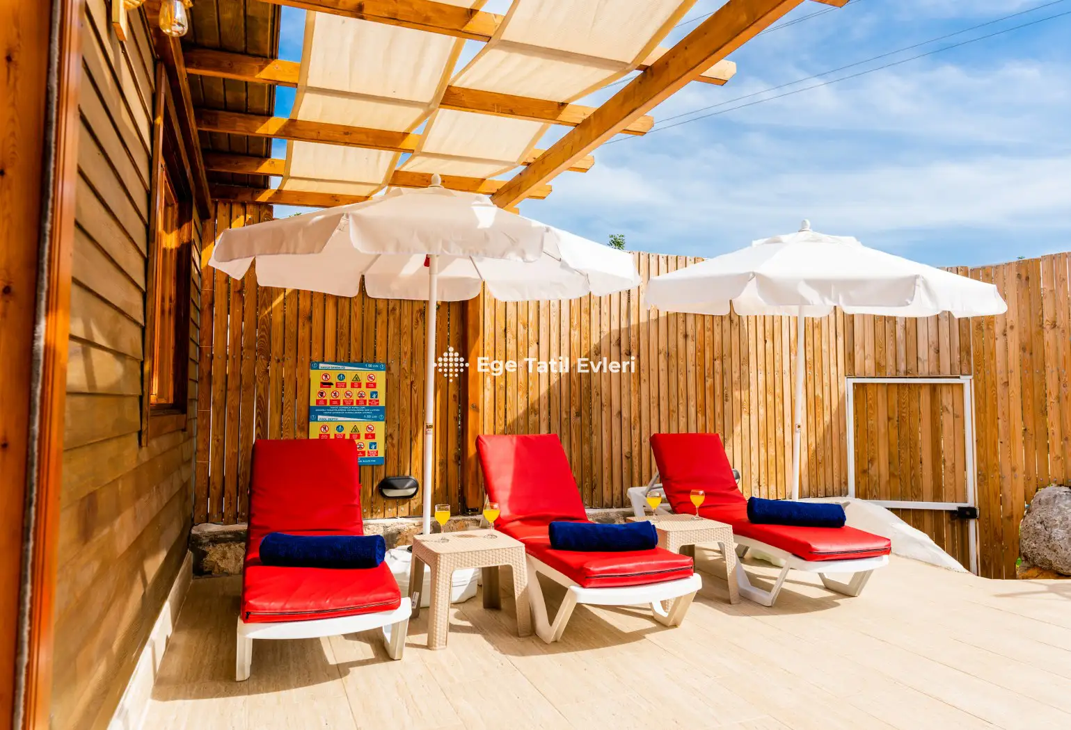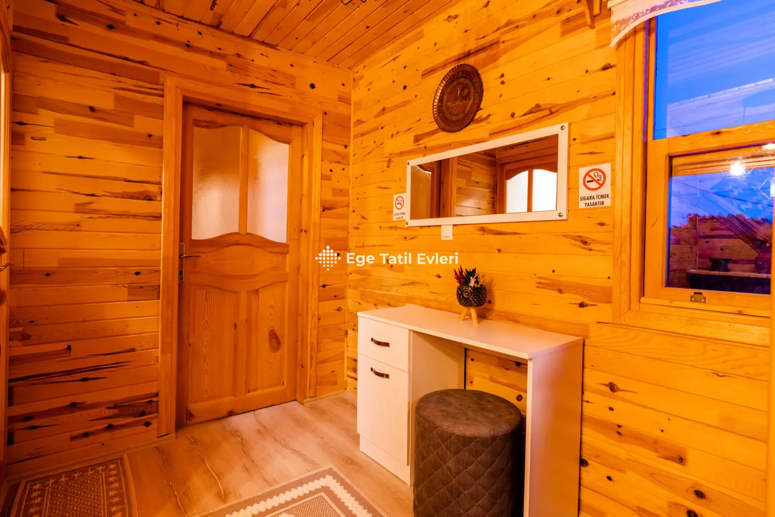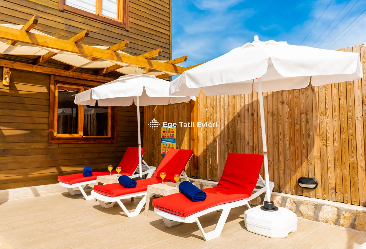 3) Bazı villaların inşaasında kullanılan, farklı malzemeler (sedir ağacı, çam ağacı, bazı plastik ürünler, bahçede veya villanın içinde bulunan her türlü bitki vs.) müşteriyi sağlıksal yönden veya psikolojik yönden rahatsız etmesi durumunda, bu olaydan EGE TATİL EVLERİ kesinlikle sorumlu tutulamaz.