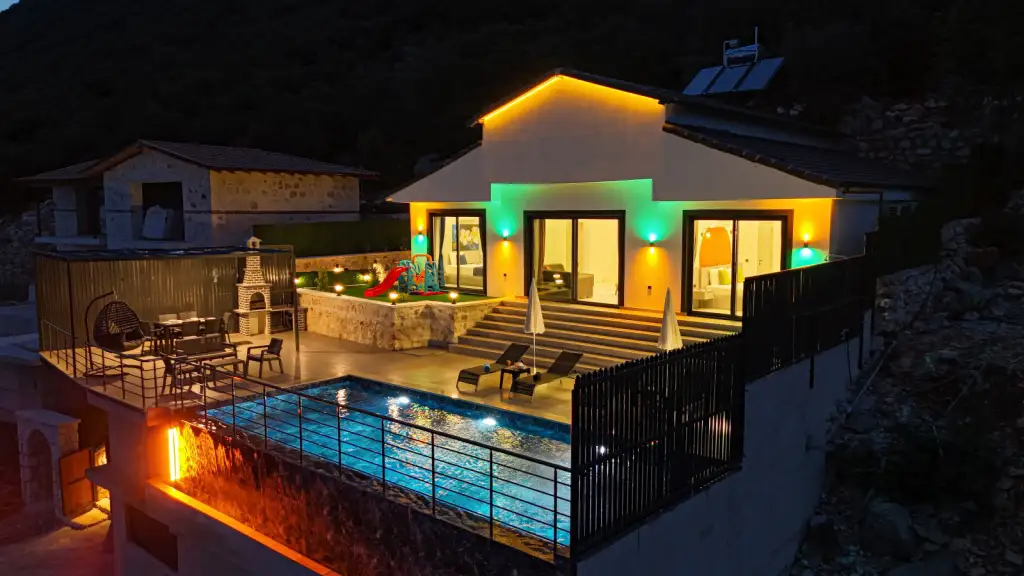 Villa Meis; Kaş Belenli bölgesinde yer alan 2 yatak odalı 4 kişi konaklama kapasitesine sahip tatil villamızdır. Kaş'ın muhteşem deniz ve doğa manzarası eşliğinde keyifli bir vakit geçirebileceğiniz villamızın havuz aanı korunaklıdır, geniş havuz terasında bahçe salıncağı, oturma alanı, yeşil bahçe alanı ve küçük misafirlerimiz için çocuk oyun alanı bulunmaktadır. Konforla dizayn edilmiş villamızın ebeveyn yatak odasında jakuzisi de mevcuttur, eşsiz manzara eşliğinde jakuzi keyfi yapabilirsiniz. Villamız balayı çiftlerimiz ve çekirdek aileler için uygundur.