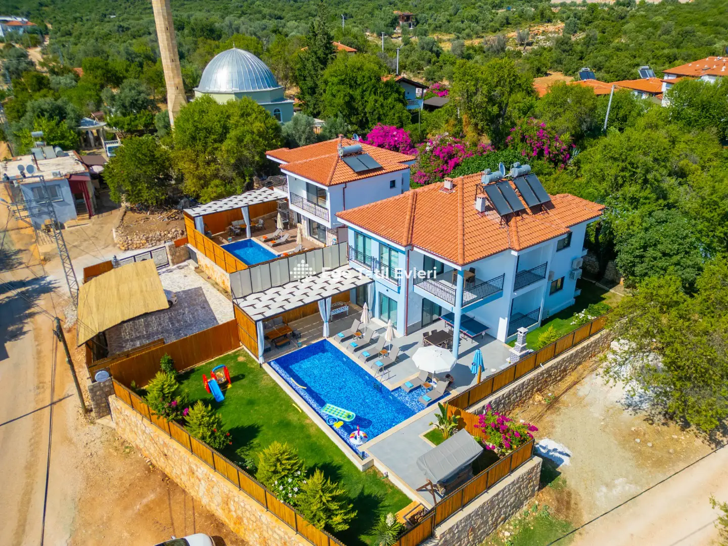 Not; Doğa içerisinde konuma sahip olan tüm villalarımızda düzenli olarak ilaçlama yapılmaktadır. Buna rağmen çevrede; kelebek, böcek, sinek vs. bulunma ihtimali vardır.