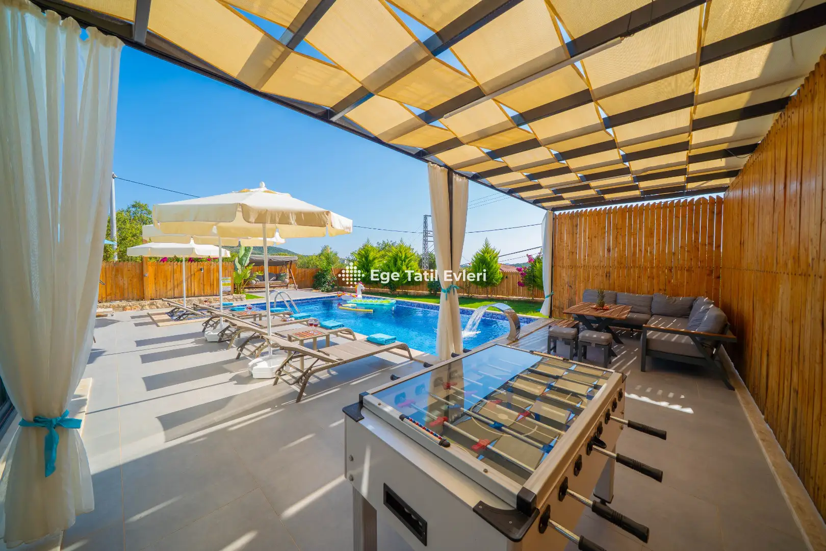 Web sayfasında belirtilen ve muhafazakar (havuzu dışarıdan görünmeyen villalar) olarak tanımlanan villalarda konaklama yapacak olan müşterilerimizin, yüzde yüz, görünmemezlik garantisini EGE TATİL EVLERİ vermez.