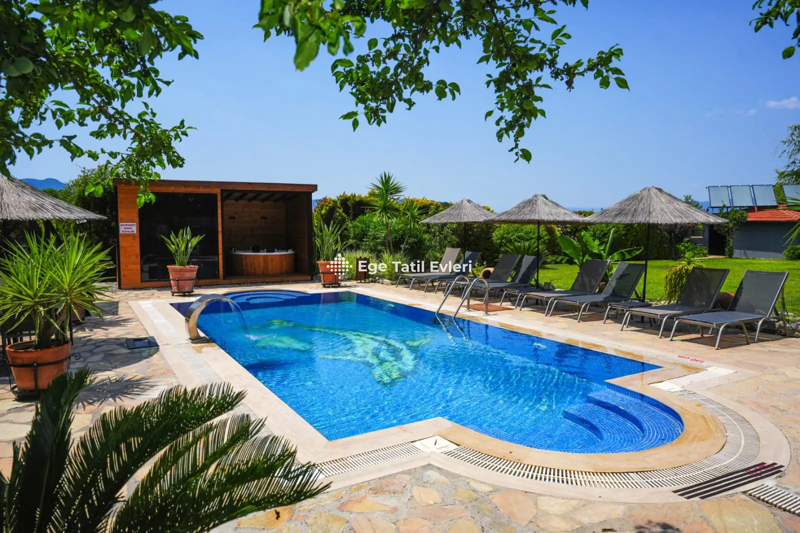 23) Villanın yüzme havuzundan veya duşundan gelen sudan meydana gelebilecek her türlü hastalıktan, klor alerjisinden vs. kimyasal alerjiden, EGE TATİL EVLERİ kesinlikle sorumlu tutulamaz. Sağlıksal veya vücut hassaslığı olan kişilerin havuza girmemesini tavsiye ederiz.
