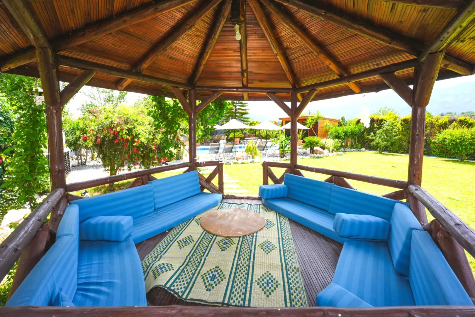 Villa Marine Blue 1; Dalyan bölgesinde bulunan donanımlı geniş aileye de uygun olan seçeneklerimizdendir.Bahçe kısmında dinlenmek için masa, sandelye ve çardak da bulunmakta. İç dizaynı ile de dikkat çeken seçeneklerimizdendir.