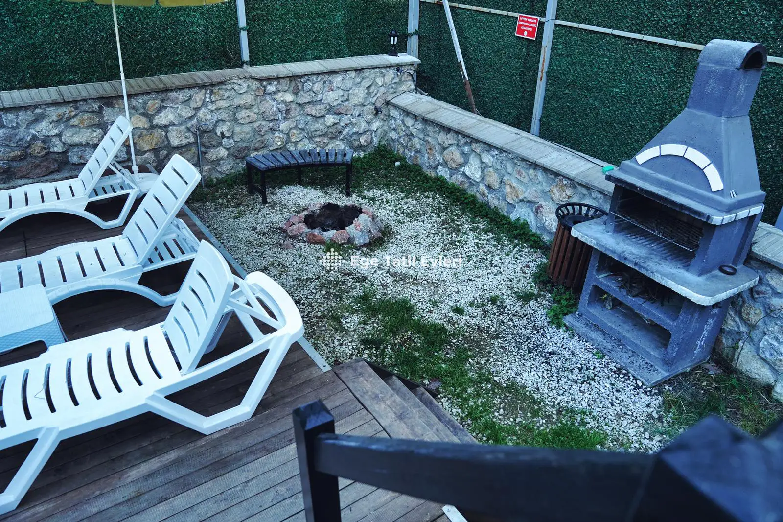 3) Bazı villaların inşaasında kullanılan, farklı malzemeler (sedir ağacı, çam ağacı, bazı plastik ürünler, bahçede veya villanın içinde bulunan her türlü bitki vs.) müşteriyi sağlıksal yönden veya psikolojik yönden rahatsız etmesi durumunda, bu olaydan EGE TATİL EVLERİ kesinlikle sorumlu tutulamaz.