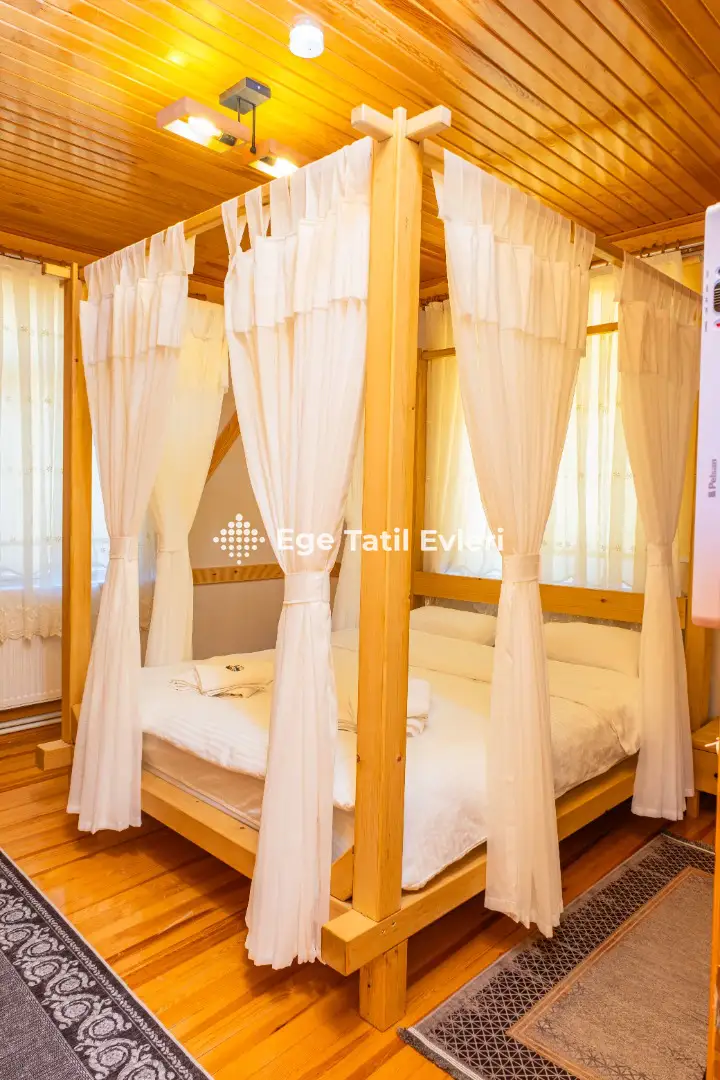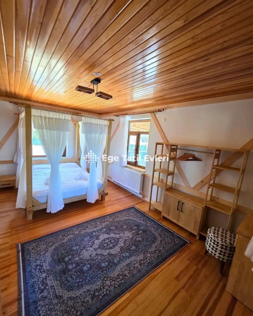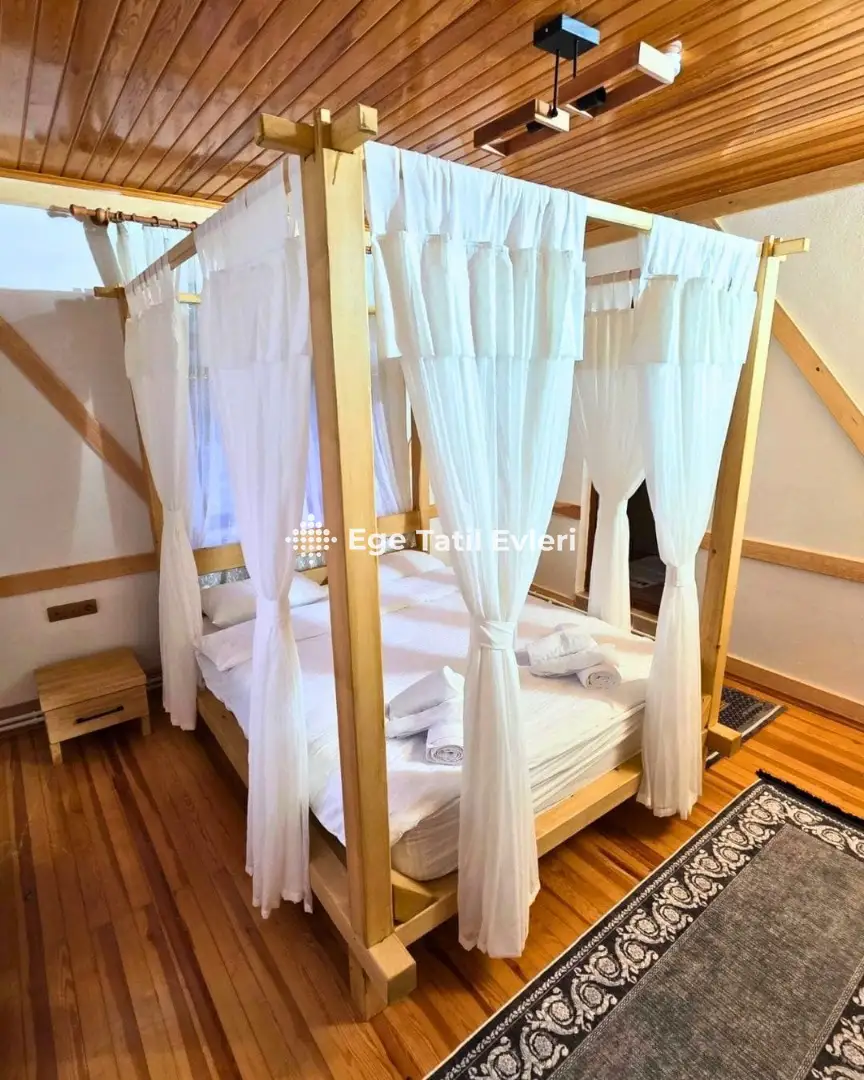 2 yatak odası, 6+2 kişi kapasitesi, şömine, soba ve modern donanımlı mutfağıyla dört mevsim boyunca konforlu bir konaklama imkânı sağlar.